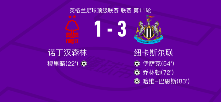 诺丁汉森林vs纽卡斯尔联比赛球员评分出炉,乔林顿获得全场最高分